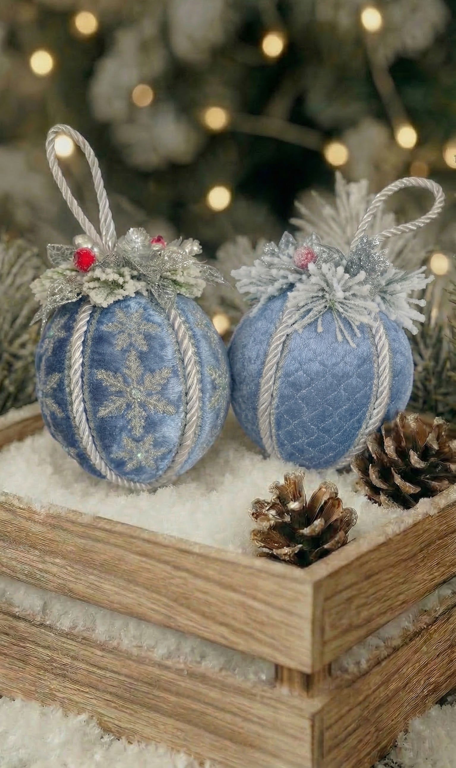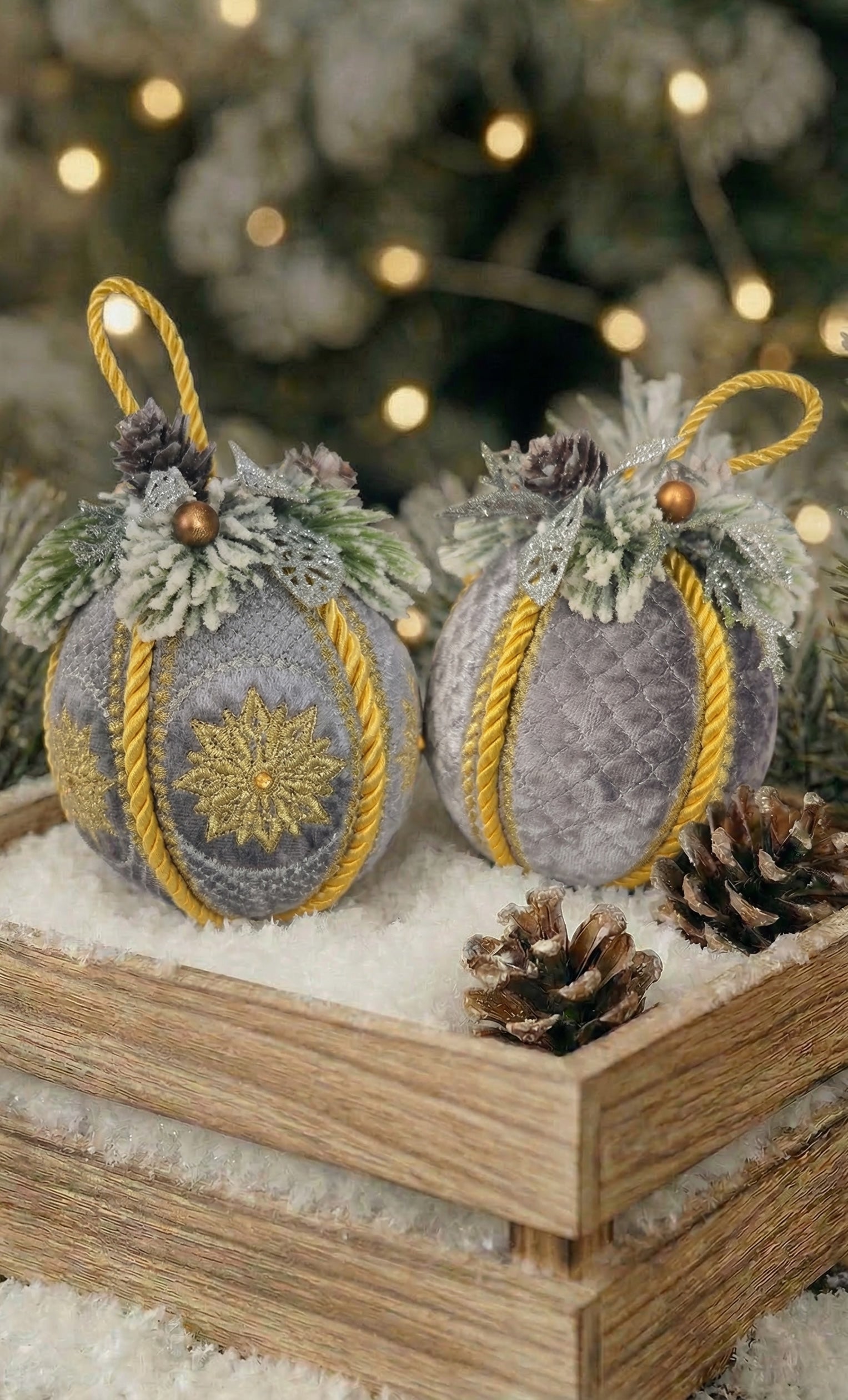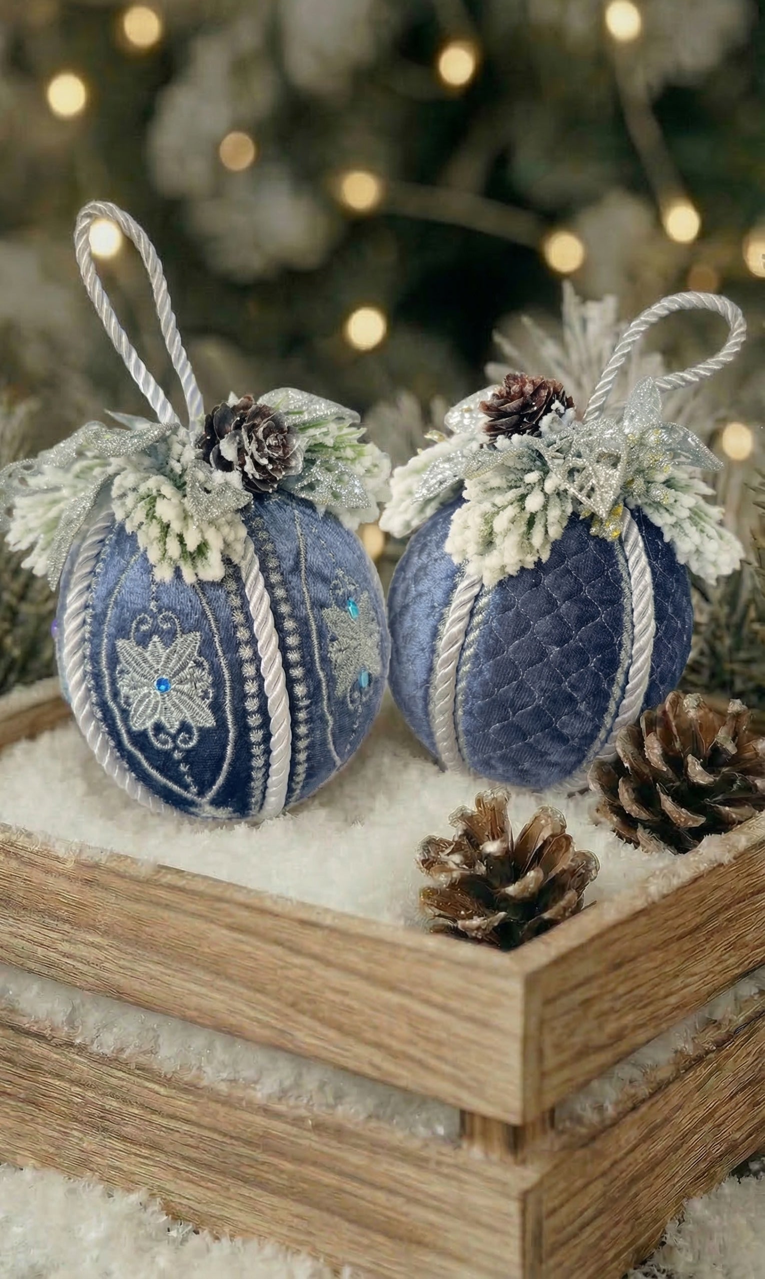 Alongside our DIY kits, we offer a collection of designer Christmas ornaments, carefully handcrafted with exceptional attention to detail. Each ornament measures 10 cm in diameter and is covered with embroidered fabric, giving it a refined and sophisticated appearance. ✨
